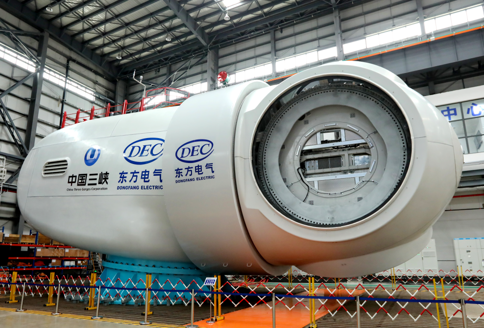 在水電領(lǐng)域,2021年6月28日,全球單機(jī)容量最大、在建規(guī)模最大的白鶴灘水電站首批機(jī)組順利投產(chǎn)發(fā)電。東方電氣集團(tuán)研制的左岸8臺(tái)百萬千瓦機(jī)組具有100%自主知識(shí)產(chǎn)權(quán),實(shí)現(xiàn)100%國產(chǎn)化,所有產(chǎn)出重大部件和投運(yùn)機(jī)組精品率100%,實(shí)現(xiàn)臺(tái)臺(tái)精品件件一流目標(biāo),開創(chuàng)巨型水電機(jī)組溫差控制和擺度水平新紀(jì)元。電站建成后,年平均發(fā)電量624.43億度,超過2019年北京市全社會(huì)用電總量(1166.4億千瓦時(shí))的二分之一,每年可節(jié)約標(biāo)準(zhǔn)煤約1968萬噸,減少排放二氧化碳5160萬噸,節(jié)能減排效益顯著。