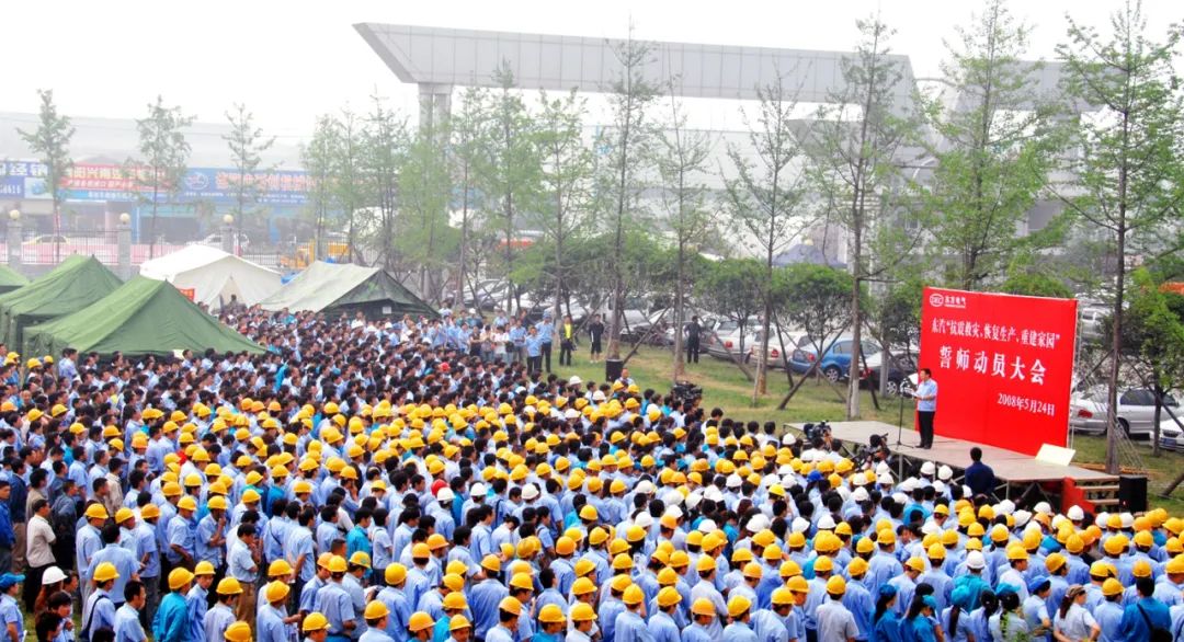 “東汽精神”集中迸發(fā)于“5·12”汶川特大地震之時(shí)。遭受重創(chuàng)的東方電氣人心手相握、共克時(shí)艱,一邊抗震救災(zāi)一邊搶抓生產(chǎn),震后第三天就如常參與招標(biāo),震后第七天就開始在廢墟中艱難搶救受損設(shè)備……用一年零九個(gè)月在德陽2600畝土地上建成新廠區(qū)。