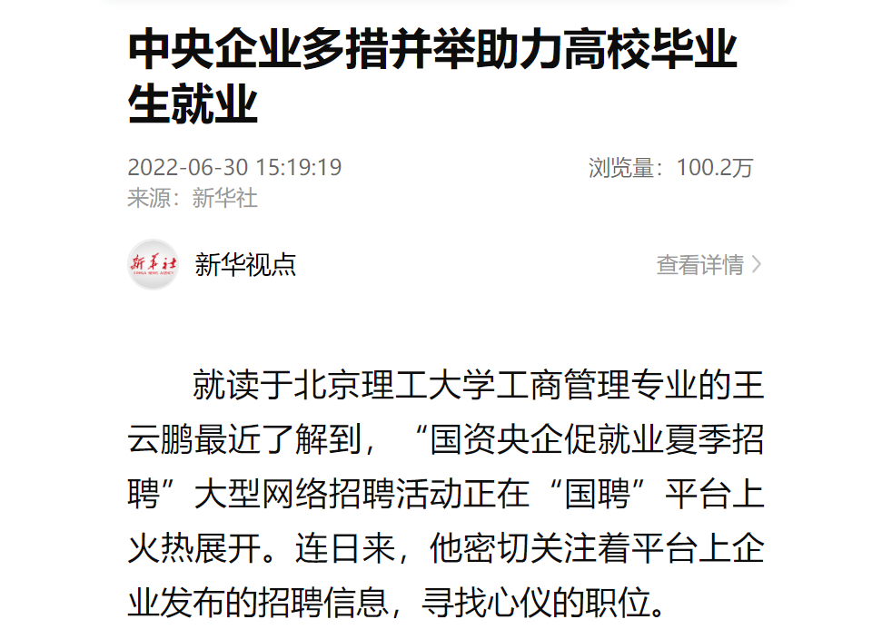 如今,無(wú)論在大型招聘網(wǎng)站、企業(yè)微信公眾號(hào),還是高校的校園宣講會(huì),面臨就業(yè)選擇和挑戰(zhàn)的畢業(yè)生們都可以較為便利地了解到中央企業(yè)發(fā)布的招聘信息。