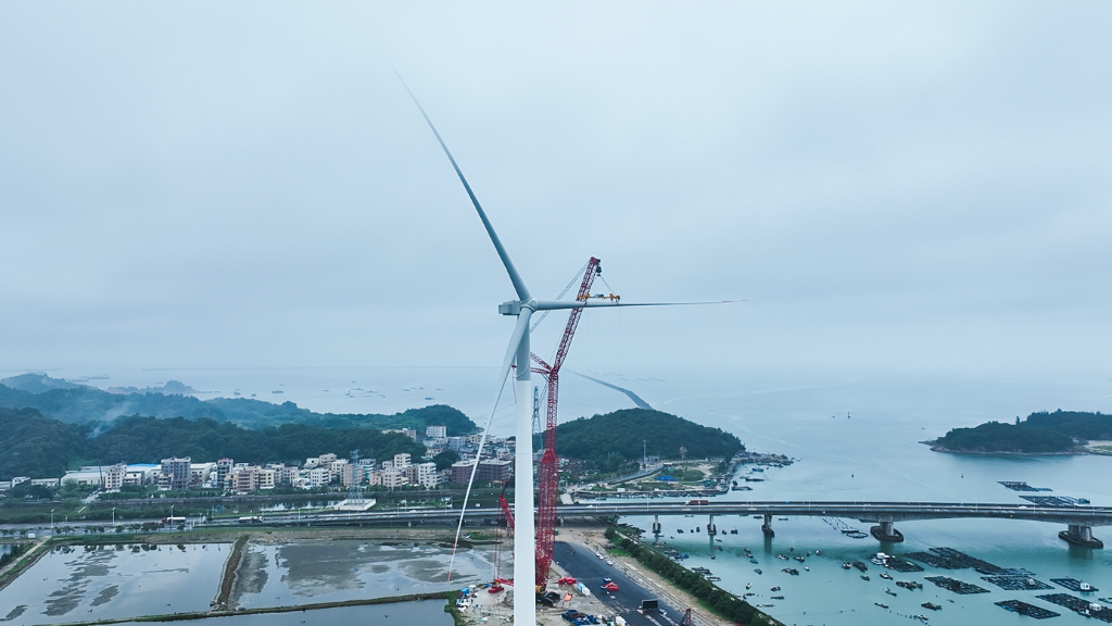 6月5日,18兆瓦半直驅(qū)大功率海上風(fēng)電機(jī)組在廣東省汕頭市風(fēng)電臨海試驗基地成功完成吊裝。(東方電氣集團(tuán)供圖)