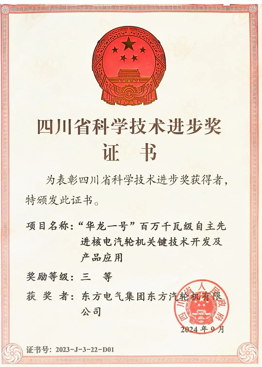 9月10日,四川省科技大會在成都召開,隆重表彰2023年度四川省科學技術獎獲獎代表。東方電氣集團5項成果獲2023年度四川省科學技術進步獎,其中,一等獎2項,二等獎1項,三等獎2項。