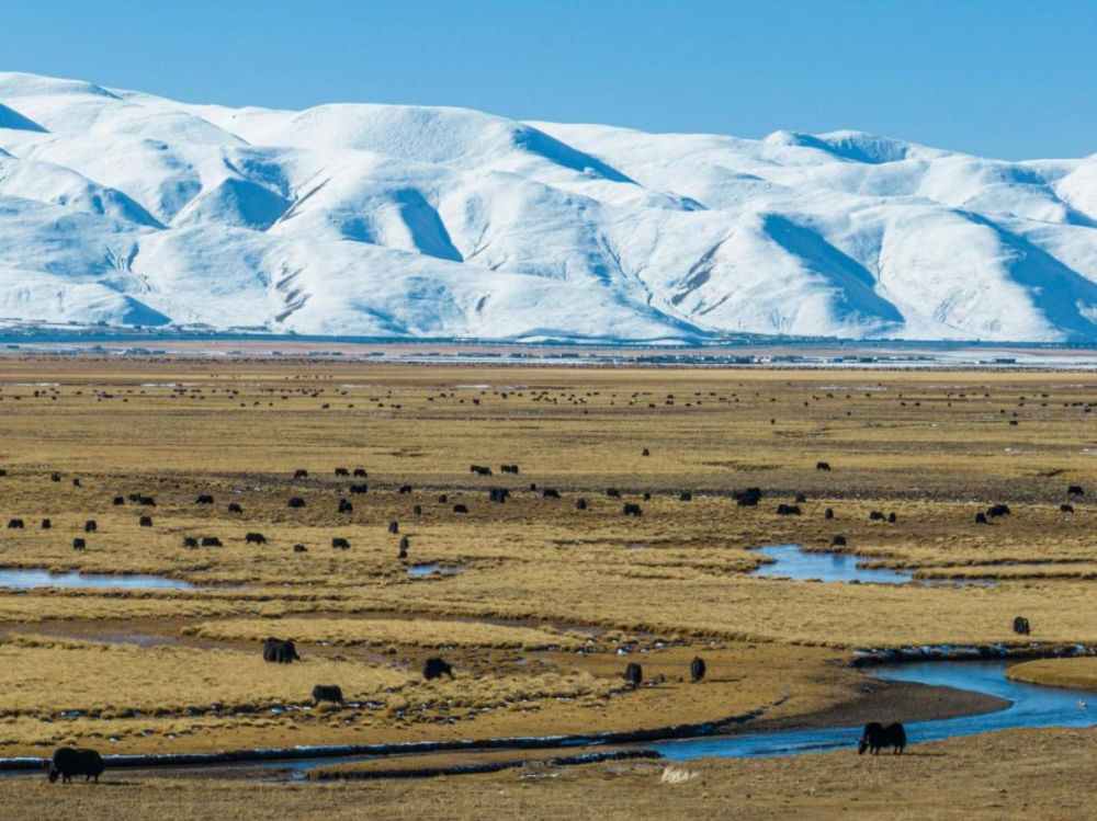 念青唐古拉山南麓的一處牧場(chǎng)(2023年11月11日攝,無(wú)人機(jī)照片)。新華社記者 孫非 攝