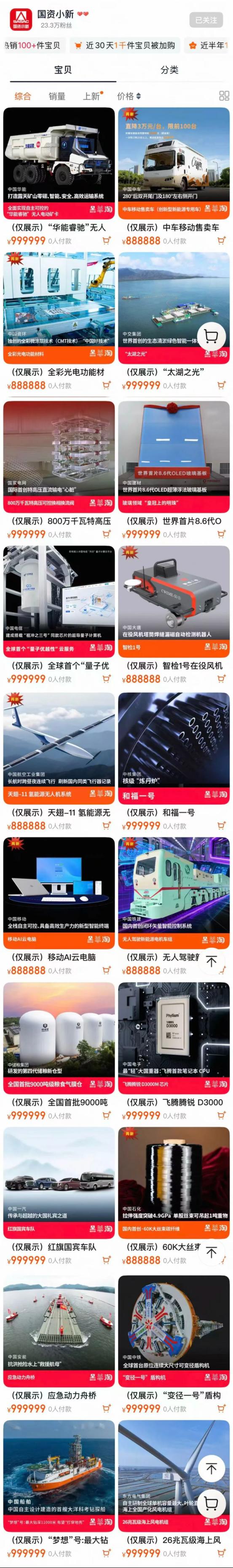 細(xì)心的朋友們可能已經(jīng)發(fā)現(xiàn),今年“國資小新”淘寶店鋪上新的諸多大國重器中,既有標(biāo)價(jià)999999的尖端“硬貨”、“無價(jià)之寶”,寓意自立自強(qiáng)的底氣;