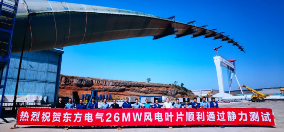 東方電氣26兆瓦海上風電葉片順利通過靜力測試