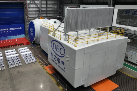 今年10月29日,全球最大26兆瓦級海上風電機組在山東東營風電裝備測試認證創(chuàng)新基地成功并網(wǎng)發(fā)電,刷新了全球已并網(wǎng)風機的單機容量與葉輪直徑兩項紀錄,標志著我國在全球海上風電高端裝備制造領域處于領先地位。從“十四五”開局之際的10兆瓦,到收官之年的26兆瓦級,東方電氣在海上風電領域走出了一條自主創(chuàng)新的發(fā)展道路。