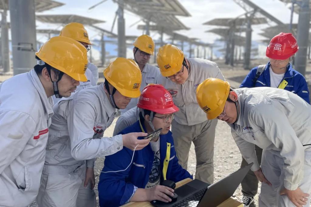 到哈密光熱項(xiàng)目時(shí),來(lái)自不同專業(yè)崗位的16名青年領(lǐng)旗出征,扎根離鄉(xiāng)數(shù)千里的哈密光熱項(xiàng)目現(xiàn)場(chǎng)。這一去,又三年。項(xiàng)目初期,擺在團(tuán)隊(duì)面前的第一個(gè)“攔路虎”是鏡場(chǎng)調(diào)試。要實(shí)現(xiàn)每一個(gè)鏡片都能穩(wěn)定“追隨”太陽(yáng),從單個(gè)鏡片到一組鏡片再到全場(chǎng)鏡片,需要不斷優(yōu)化方案,每次調(diào)試用時(shí)都在十個(gè)小時(shí)以上。時(shí)值酷暑,室外溫度高達(dá)50攝氏度,團(tuán)隊(duì)成員的衣服濕了又干,干了又濕,結(jié)出了一層厚厚的鹽霜。