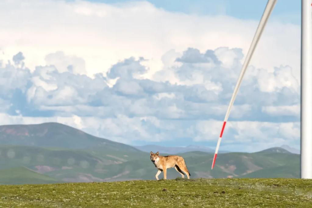“低吼的野狼、翱翔的禿鷲、跳躍的野兔,還有轉(zhuǎn)動的風機,在這荒涼的地方看久了還覺得挺和諧的。”黃斌說。