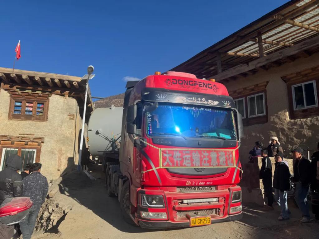 運輸人員積極與該路段居住的藏族同胞溝通,對方表示同意拆除圍墻,同時強調(diào)不收取費用,支持家鄉(xiāng)建設(shè)。隨后,燈桿、圍墻相繼拆除,在多次調(diào)整車身位置后,車隊終于通過了。
