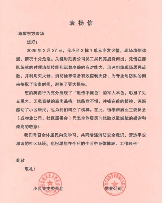 當(dāng)事業(yè)主在遞交表揚信時感慨