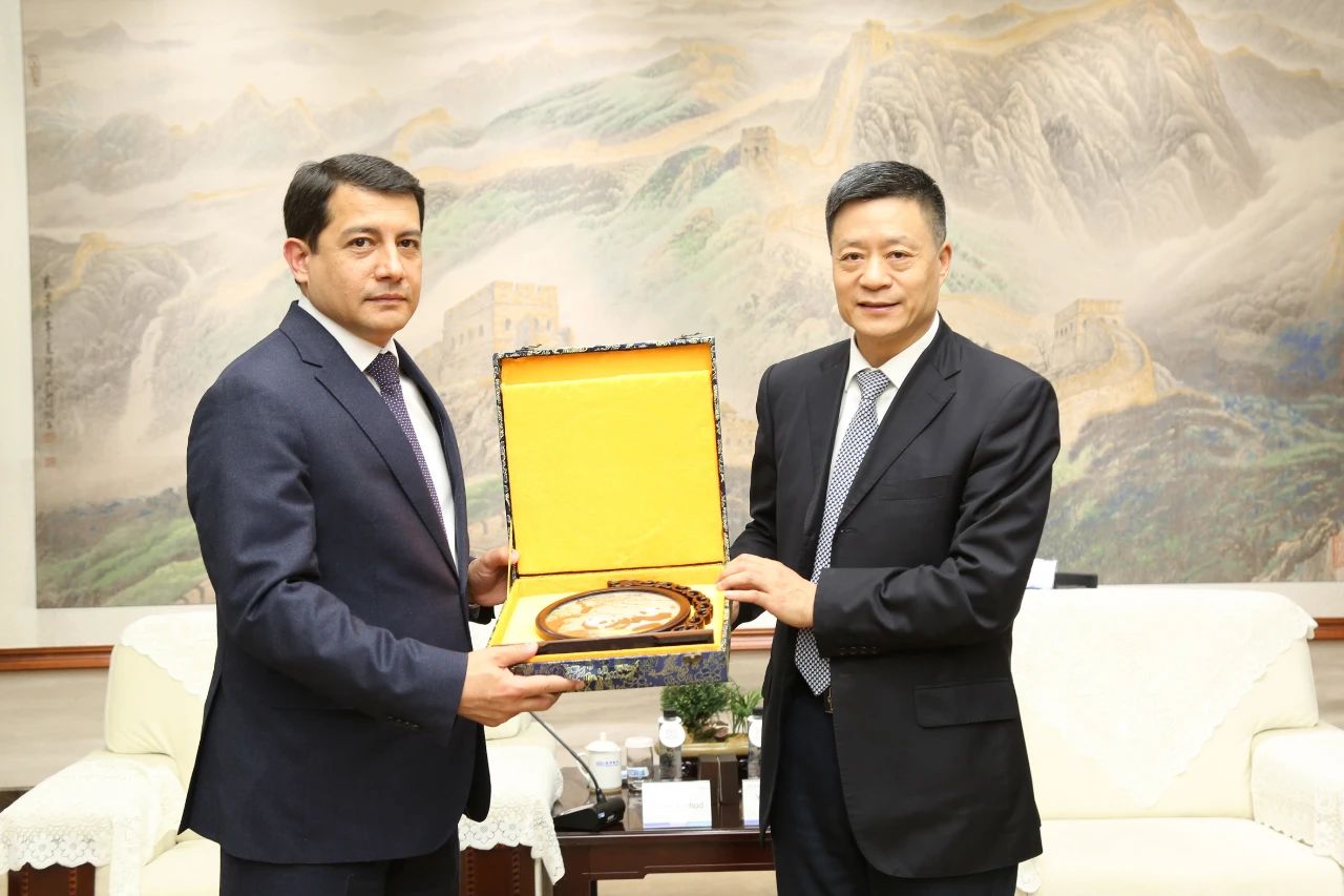 本網訊 3月17日,烏茲別克斯坦駐華大使法爾霍得·阿爾濟耶夫一行訪問東方電氣集團,受到集團公司黨組書記、董事長俞培根的熱情接待。集團公司黨組副書記、董事宋致遠,四川省外事辦公室副主任李輝陪同參加。
