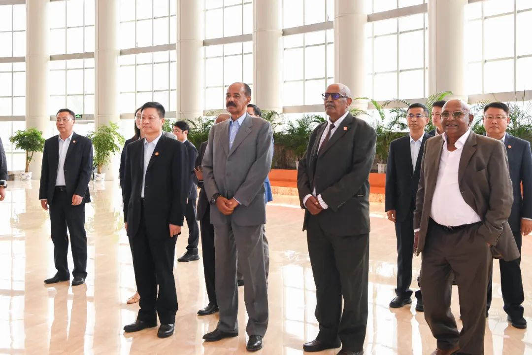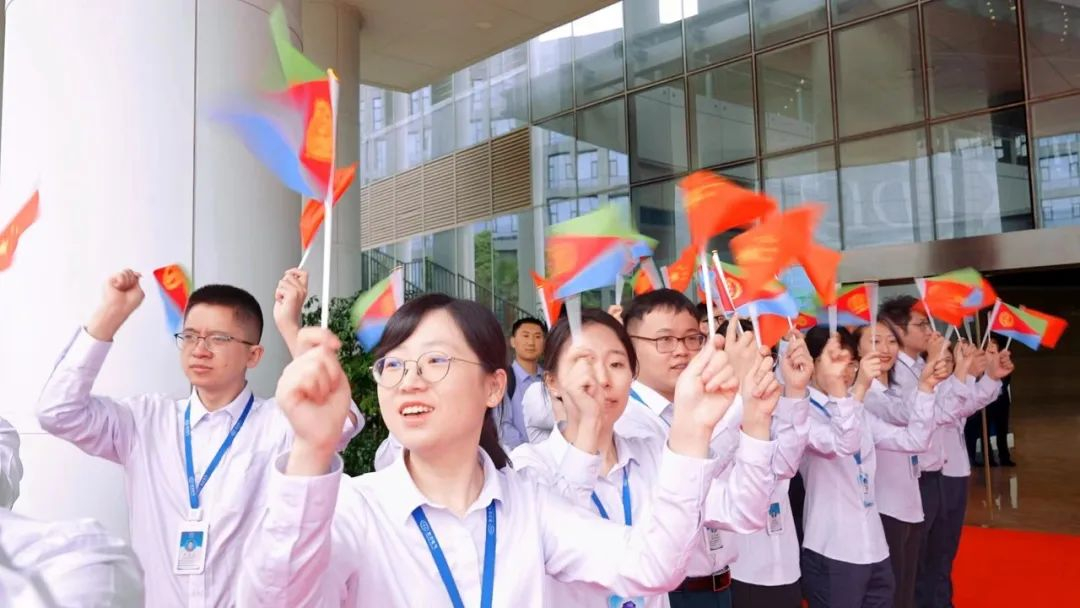 東方電氣科技展示廳前,東方電氣青年代表排列整齊,熱情揮舞著中厄兩國(guó)國(guó)旗,熱烈表達(dá)著對(duì)伊薩亞斯一行的歡迎之情。