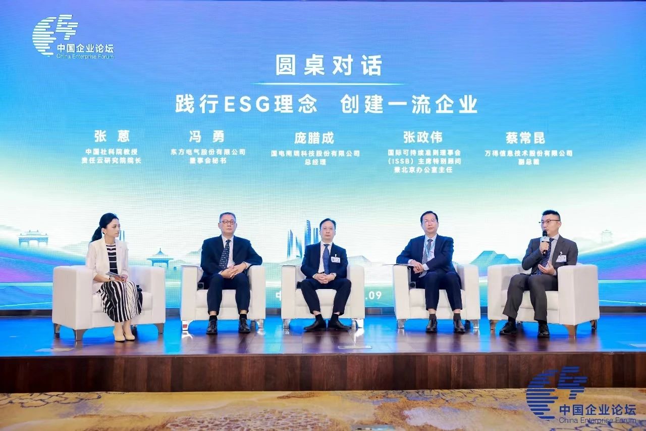 東方電氣股份有限公司董事會秘書馮勇作為10家“央企ESG·先鋒100指數(shù)”入選企業(yè)代表領(lǐng)取證書,并在第六屆中國企業(yè)論壇平行論壇“踐行ESG理念,創(chuàng)建一流企業(yè)——中央企業(yè)ESG論壇”中作圓桌分享。