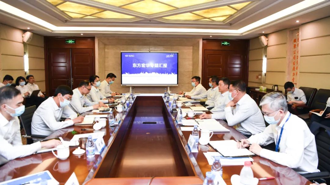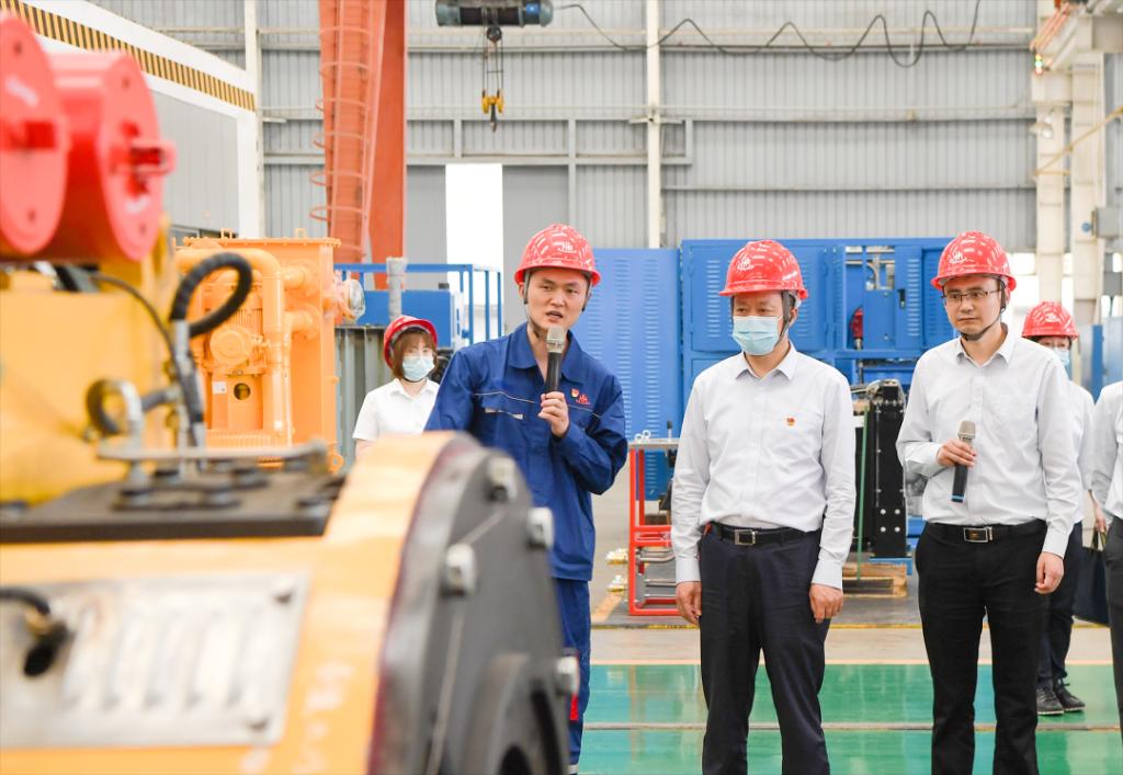 俞培根首先與東方宏華領(lǐng)導(dǎo)班子座談,調(diào)研東方宏華黨的建設(shè)、生產(chǎn)經(jīng)營及主題教育開展情況,并圍繞深化改革、科技創(chuàng)新、能源裝備高質(zhì)量發(fā)展等交流研討。