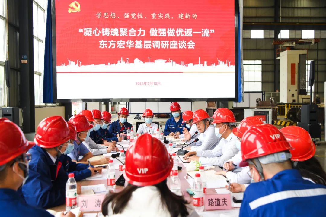 5月15日,在出席東方電氣集團(tuán)2023年“學(xué)思想、爭先鋒、謀發(fā)展、建新功”群眾性主題宣傳教育活動啟動會后,集團(tuán)公司黨組書記、董事長俞培根深入東方宏華,圍繞“凝心鑄魂聚合力,做強(qiáng)做優(yōu)返一流”主題,開展主題教育專題調(diào)研。集團(tuán)公司領(lǐng)導(dǎo)宋致遠(yuǎn)、孫國君、張彥軍、李忠軍一同調(diào)研。