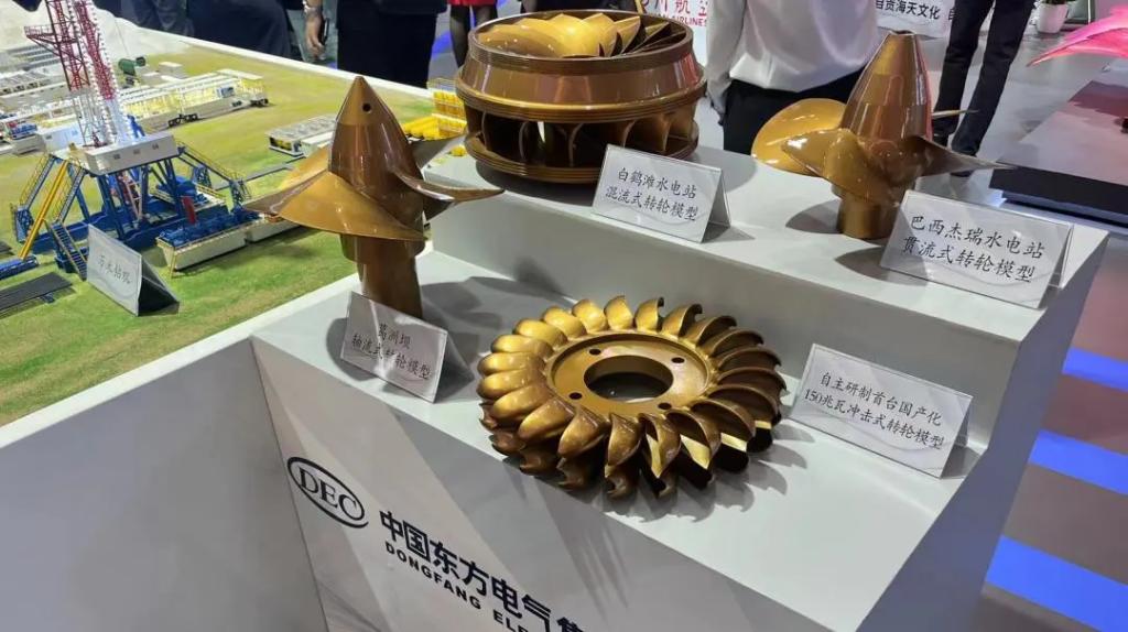 展會期間,東方電氣高端鉆機、高效水輪機等硬核產(chǎn)品模型驚喜亮相,展示了東方電氣“六電六業(yè)”的綠色低碳產(chǎn)業(yè)布局、產(chǎn)品出口和綜合服務貿(mào)易,吸引了眾多參觀者駐足觀看,展示了中央企業(yè)在服務全球、推動全球能源綠色低碳轉(zhuǎn)型中的積極作用。